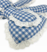 Featuring a sharp check pattern in a soft blue color, this blue bow throw pillow maintains its vibrant color over time. The fade resistant design keeps it looking fresh, adding a timeless touch to any space. Beyond decor, it serves as a cozy reading pillow, supportive lumbar cushion, or neck rest. The comfort design blends style and functionality for everyday relaxation. For daily cleaning, wipe with a damp cloth.