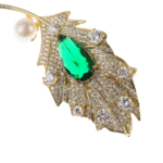 The centerpiece is a vibrant green crystal, surrounded by sparkling rhinestones that enhance its luxurious appeal.