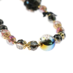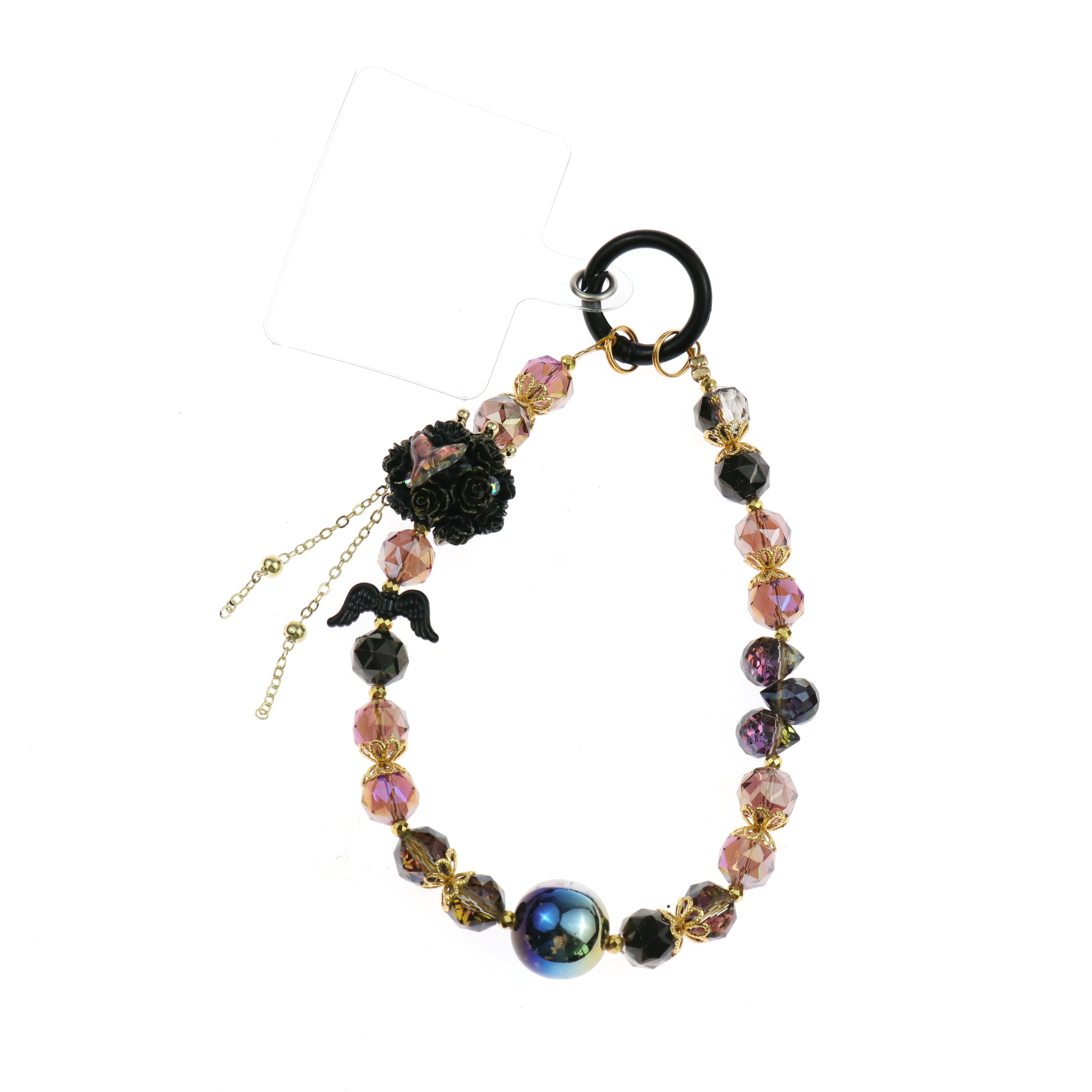 5.91″× 2.36″ Beaded Cellphone Charm Single with Facted Round Beads and Rose Craved Beads – Black