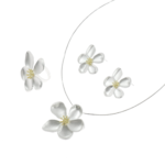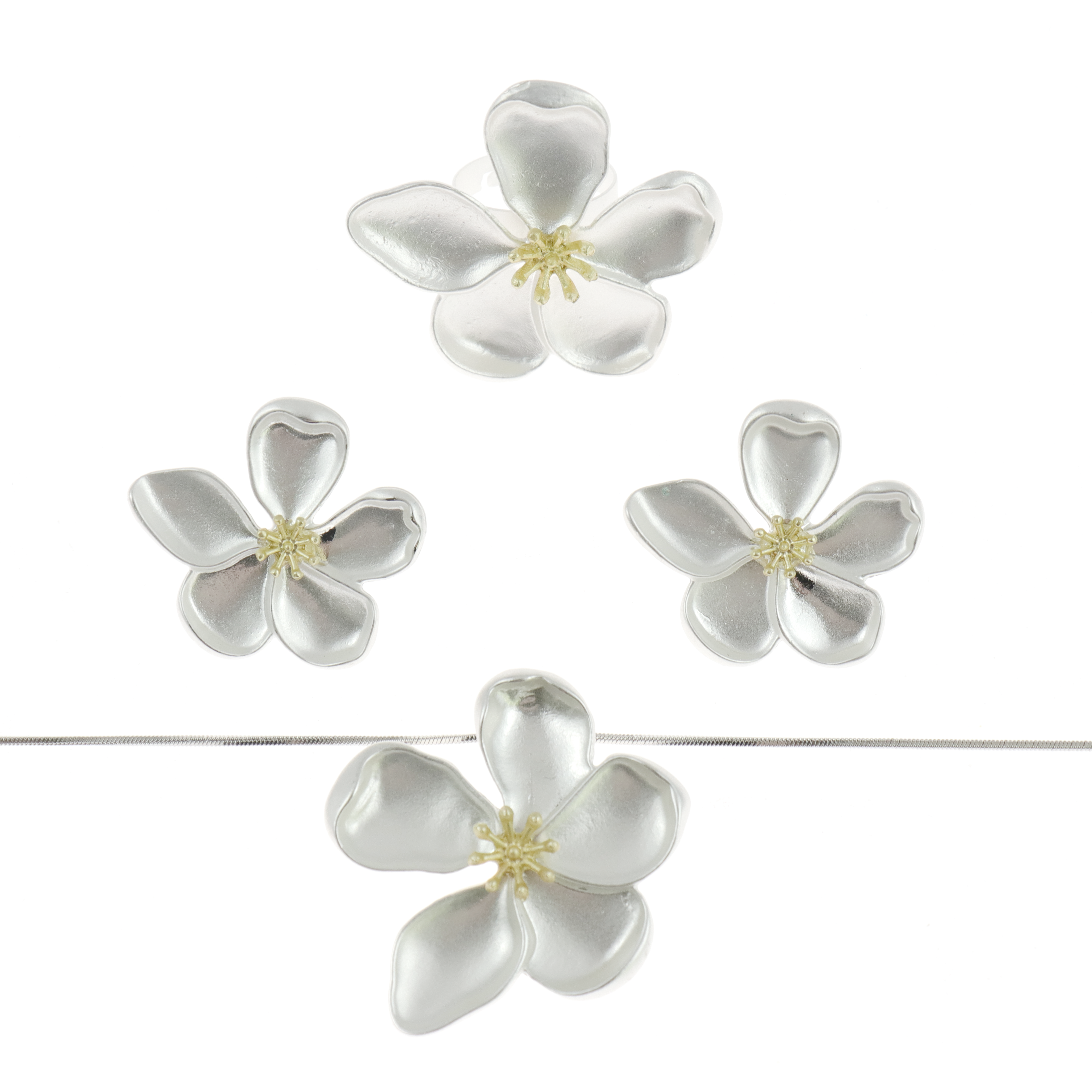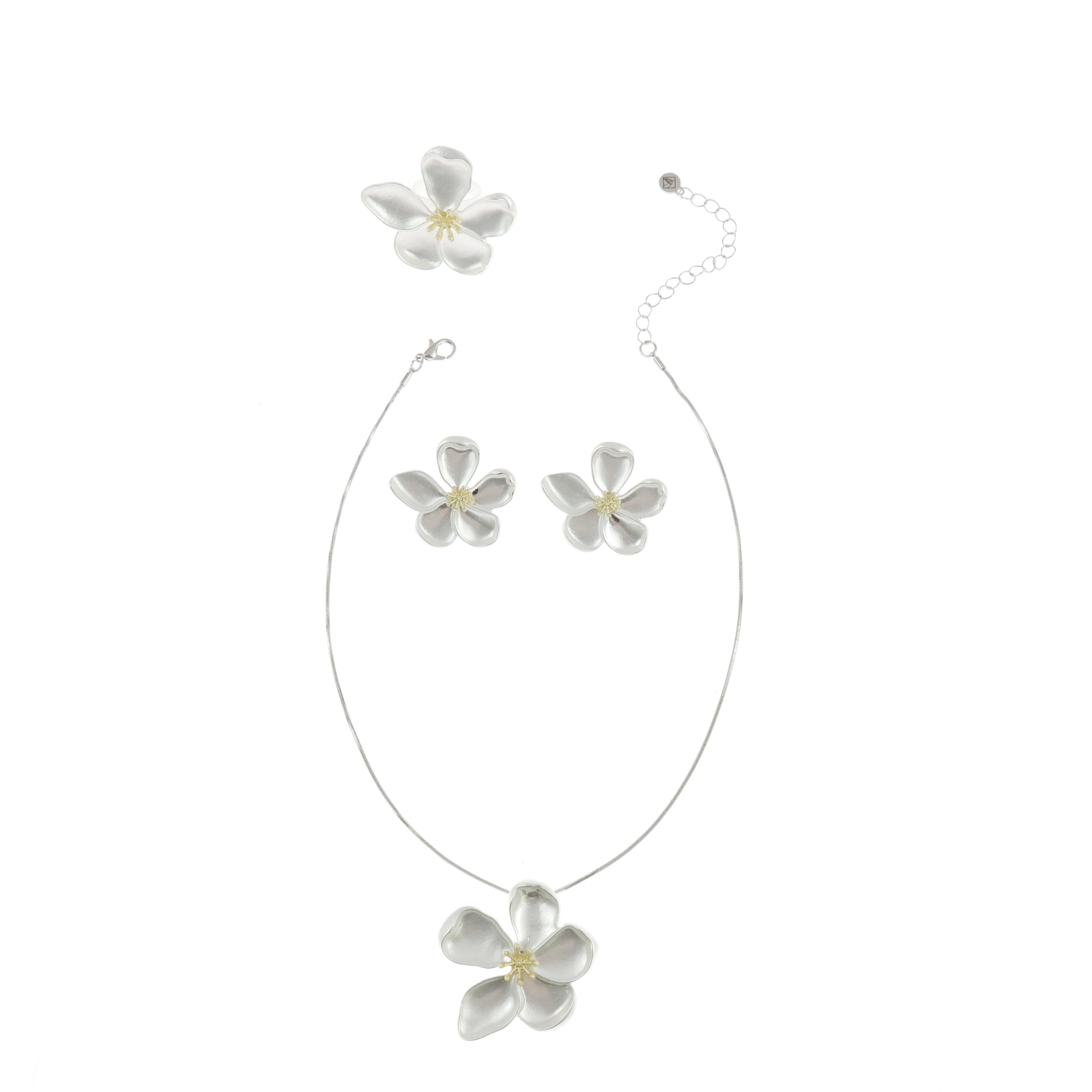 Antique Flower Necklace, Ring and Earring set -Silver , necklace 14″+3″