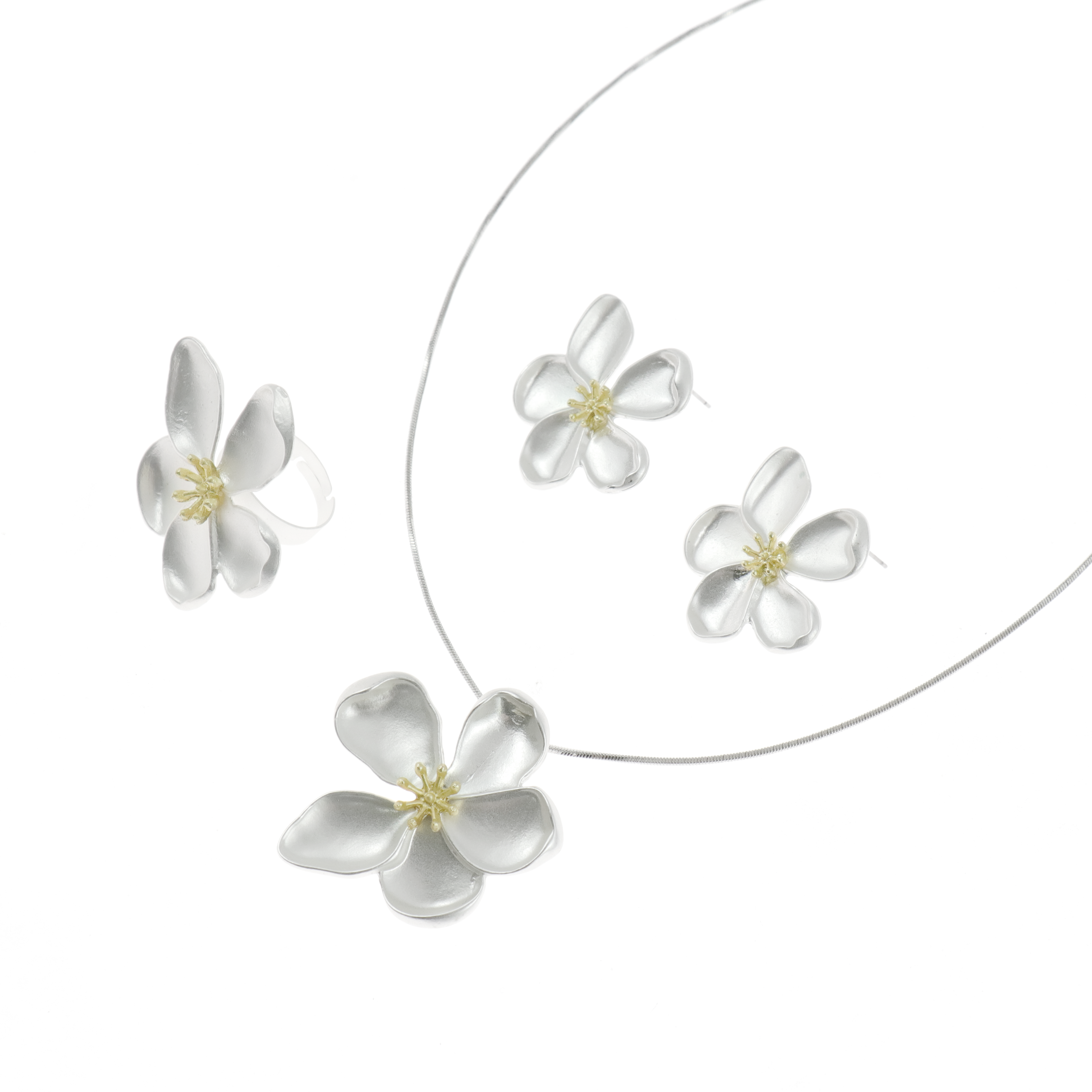 Antique Flower Necklace, Ring and Earring set -Silver