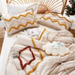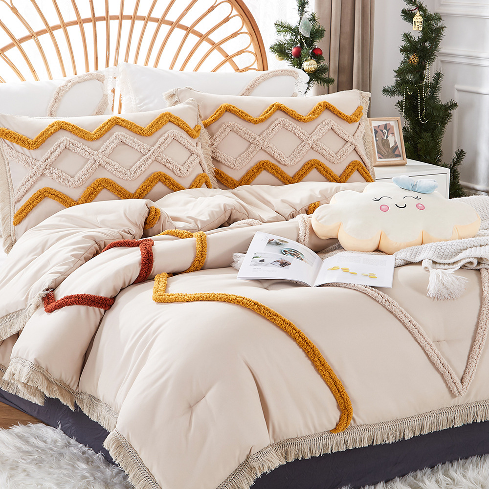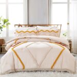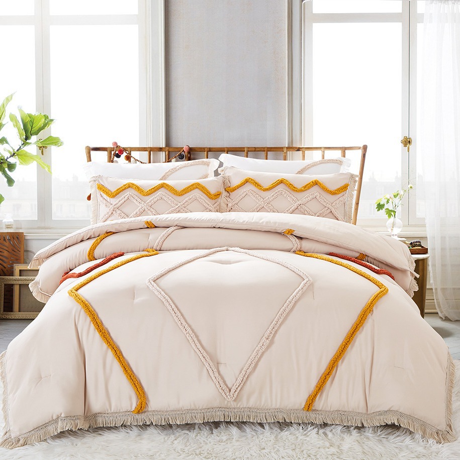 This decorative comforter set includes one queen comforter and two pillow sham with an inner envelope, both featuring a tufted diamond check design. The soft fabric material with filling ensures comfortable year-round use.