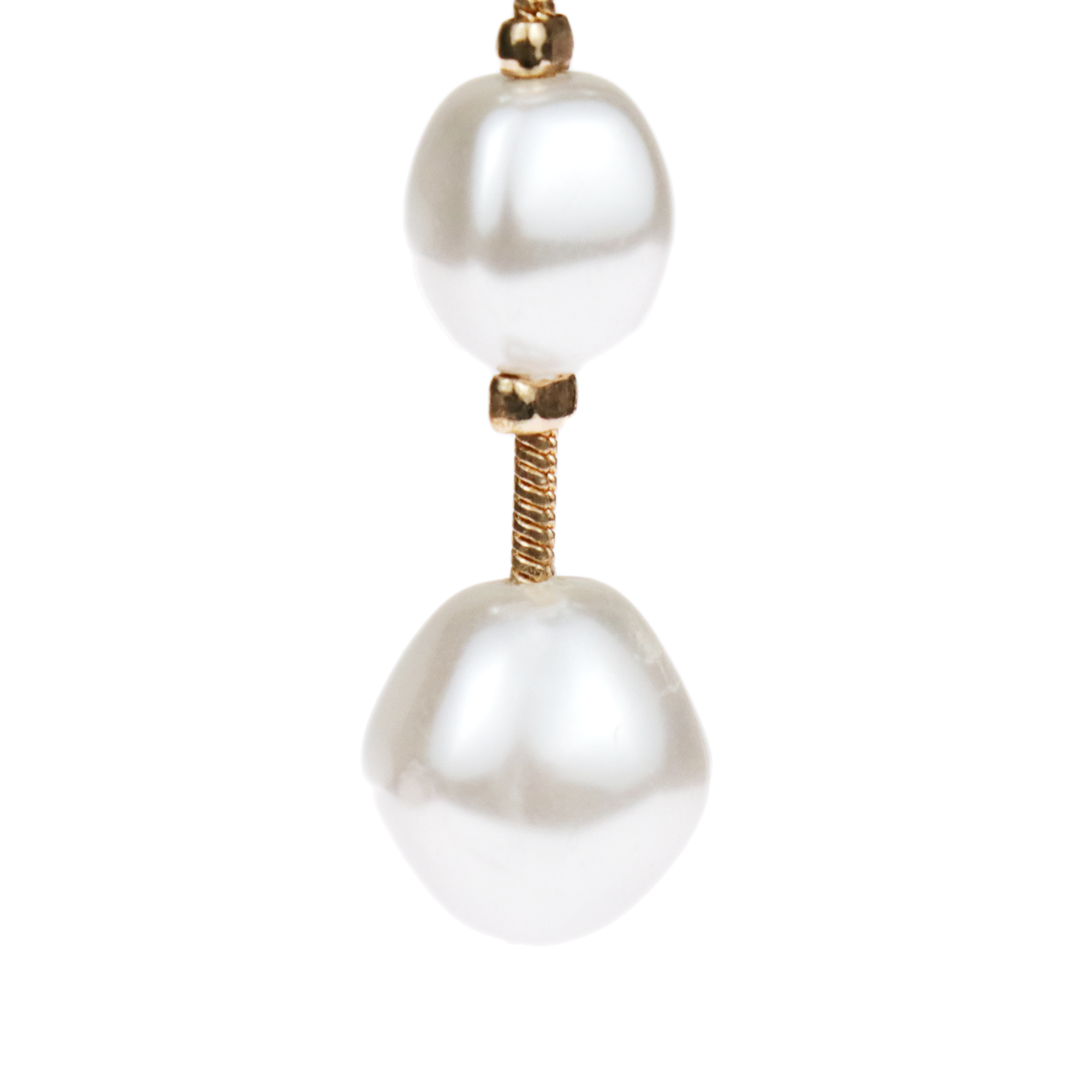 As each faux pearl delicately descends in a linear fashion, these earrings embody a sense of graceful movement and understated elegance.