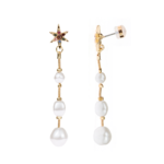 Embedded Stone Starburst with Simulated Pearl Drop Earring – Gold