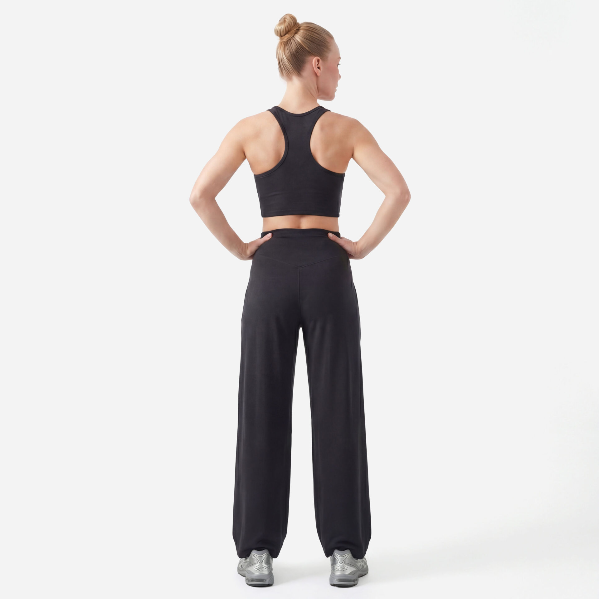 These flared high-waisted leggings are the perfect blend of retro flair and modern comfort. Coming in a charocal colourway, they’re easy to pair with anything in your wardrobe, from blouses to oversized tees.  Whether you’re lounging at home or heading out for brunch, these leggings will be your go-to for effortless style with a groovy twist!