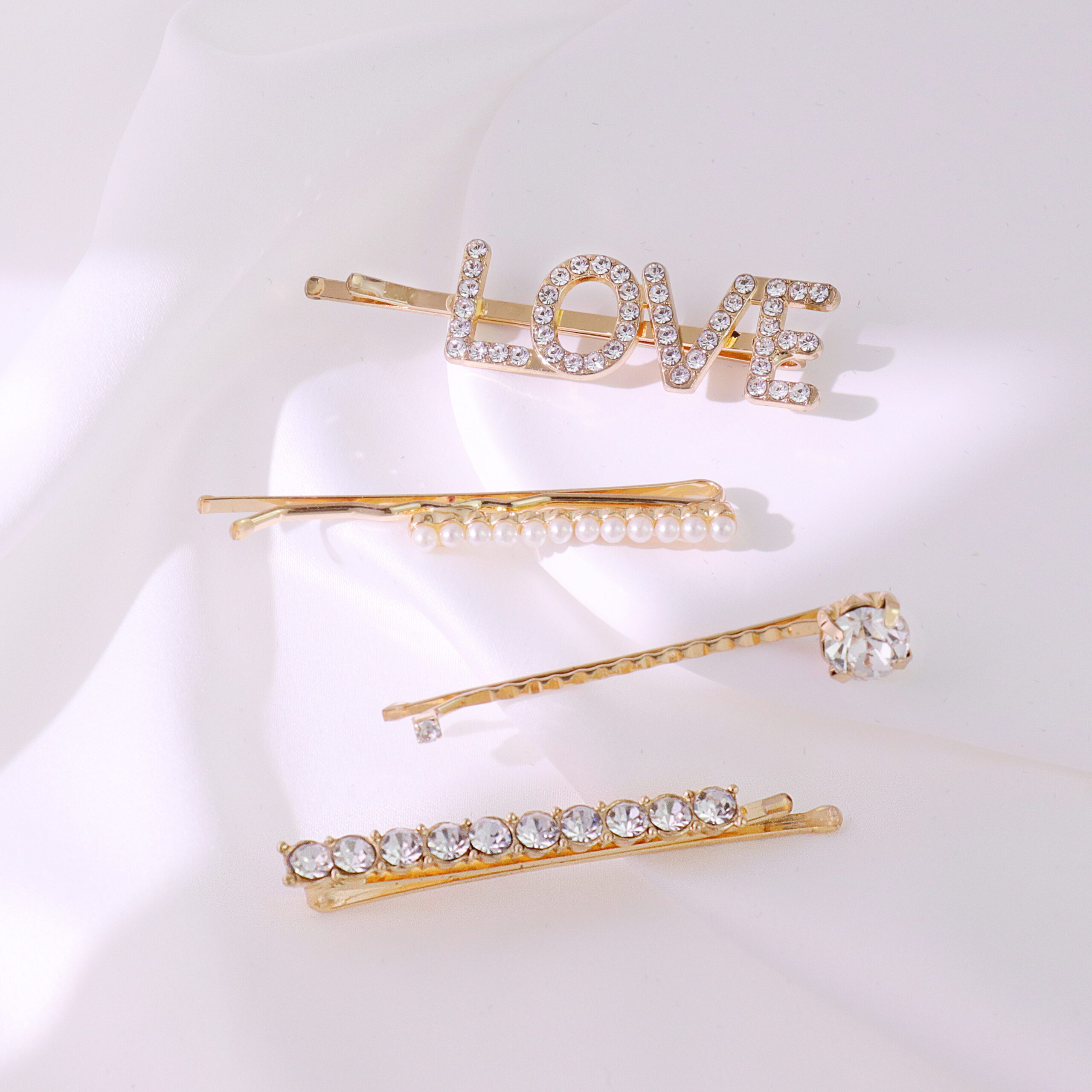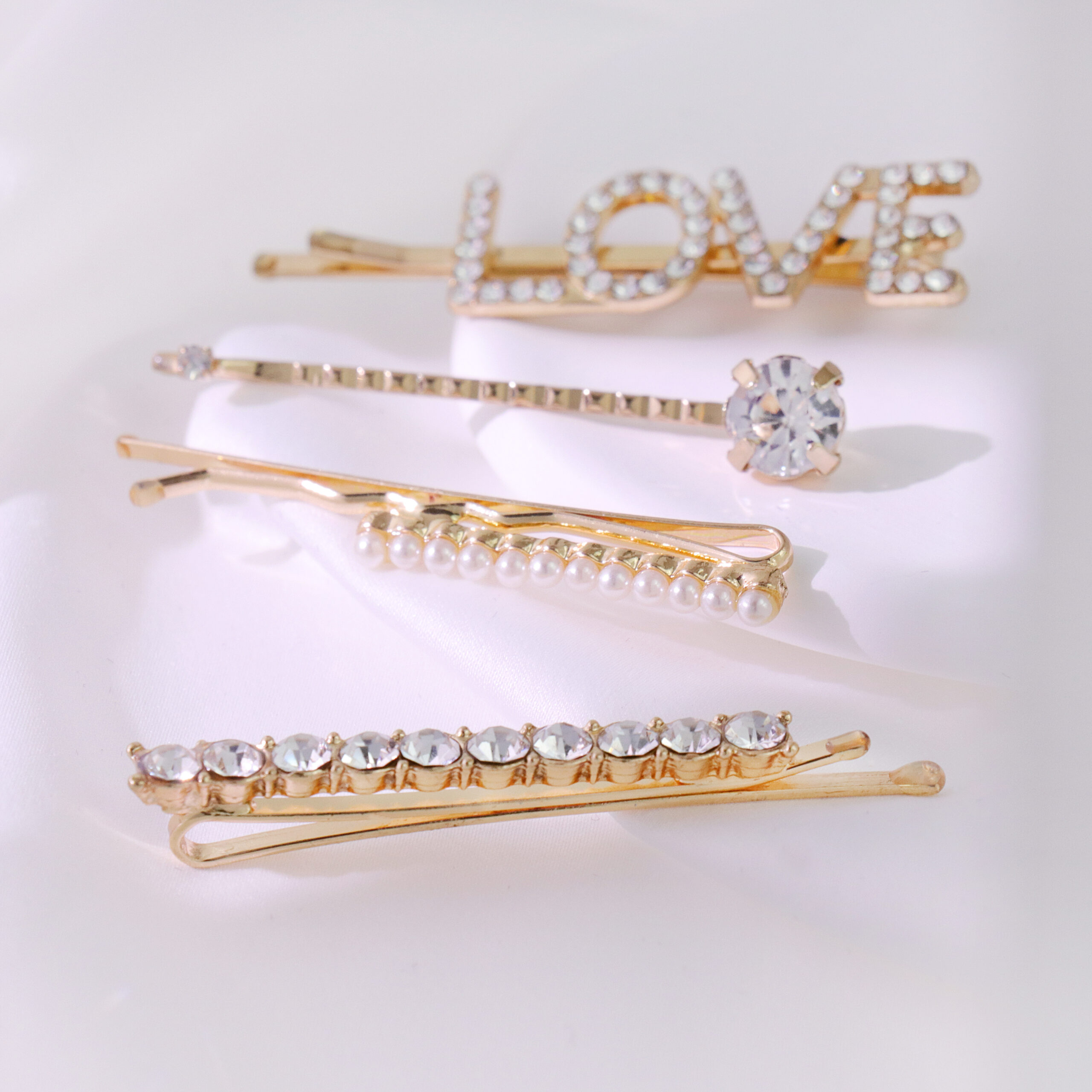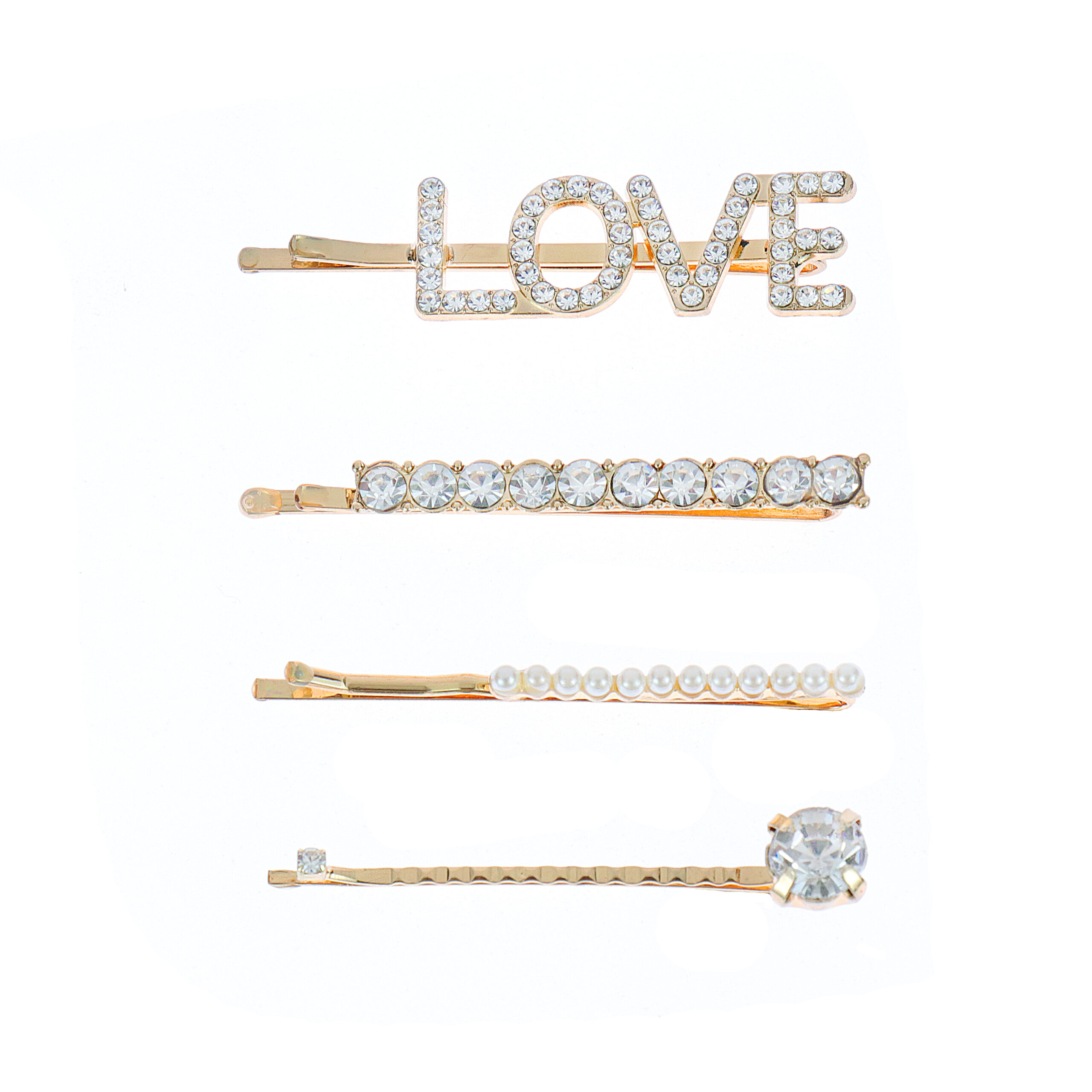 Sparkle with elegance! This LOVE hairpin set features dazzling rhinestones and delicate pearls, adding a romantic touch to any hairstyle. Perfect for weddings, parties, or everyday glam. Shine with love!