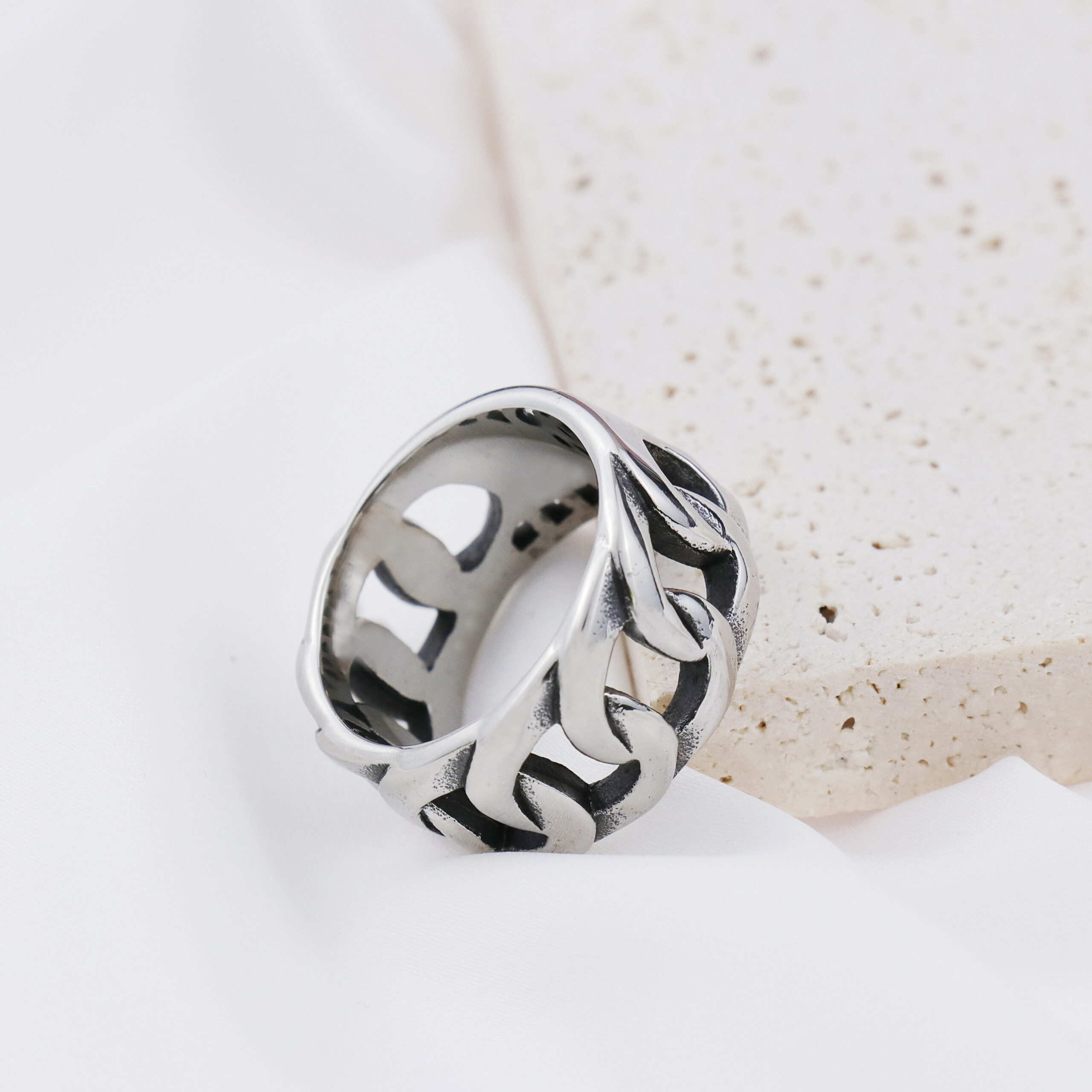 Embrace rugged style with this eye-catching ring, crafted from solid stainless steel in an authentic motorcycle chain design. The interlocking links create a bold 3D texture, polished to a high-shine or matte finish for your preference. Built for durability, it’s scratch-resistant, tarnish-proof and hypoallergenic for comfortable daily wear. Perfect for bikers, rockers, and anyone who loves industrial-chic accessories with an edgy vibe. The substantial weight (approx. 10.6g) gives it a premium feel.