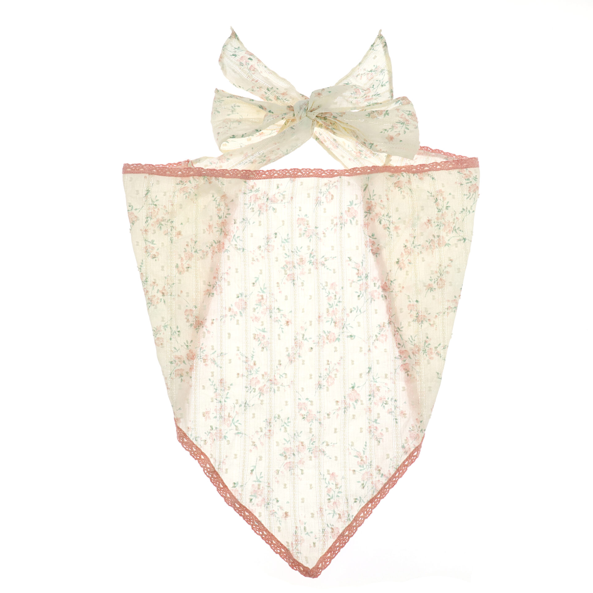 Pink Floral Print Lace Trimmed Triangle Bandana
