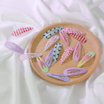 This playful accessory features a colorful, eye-catching print on a smooth teardrop-shaped base. The lightweight yet sturdy clip adds a fun pop of color to ponytails, braids, or half-up styles, perfect for casual outings or festivals.