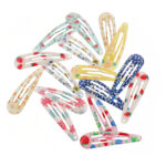 This playful accessory features a colorful, eye-catching print on a smooth teardrop-shaped base. The lightweight yet sturdy clip adds a fun pop of color to ponytails, braids, or half-up styles, perfect for casual outings or festivals.