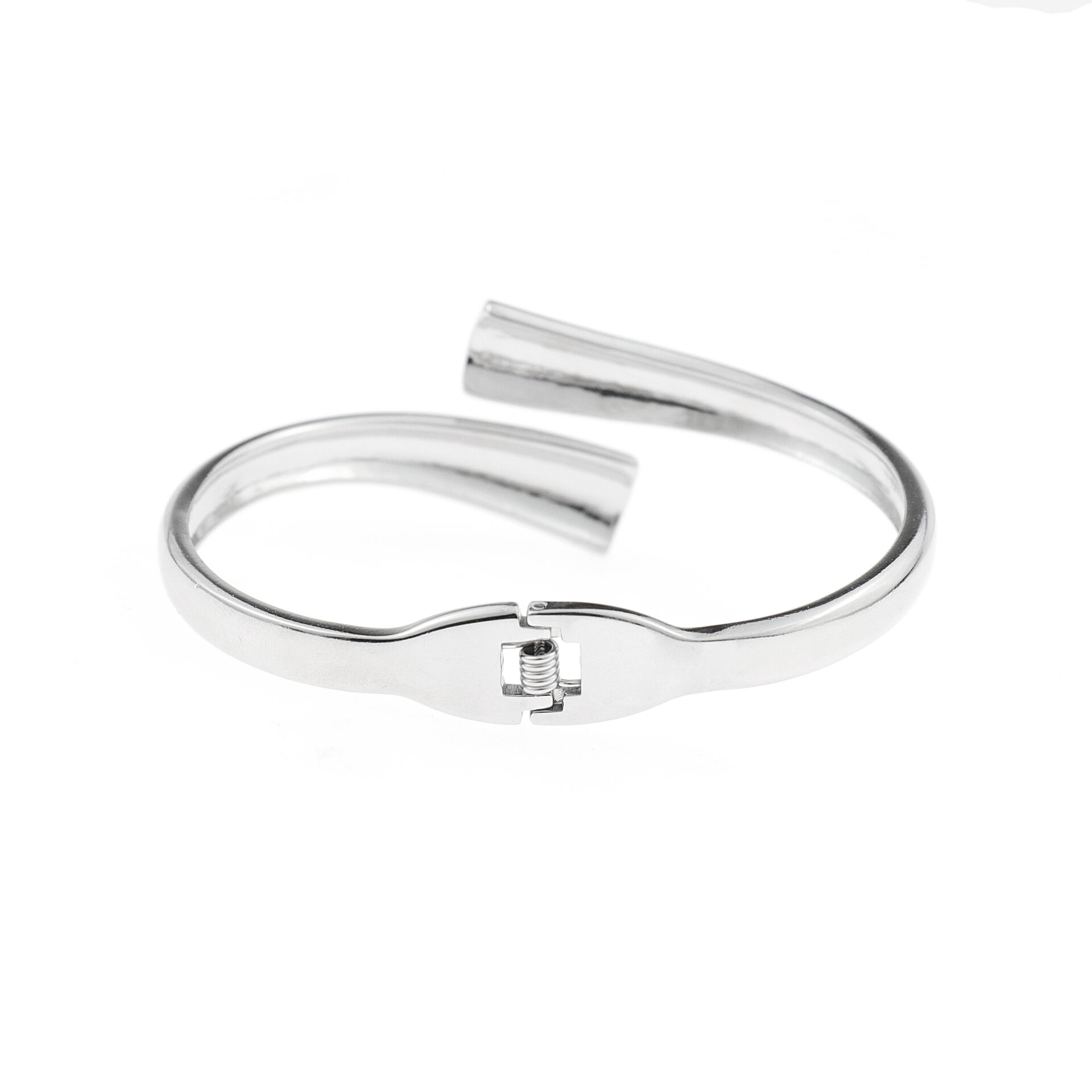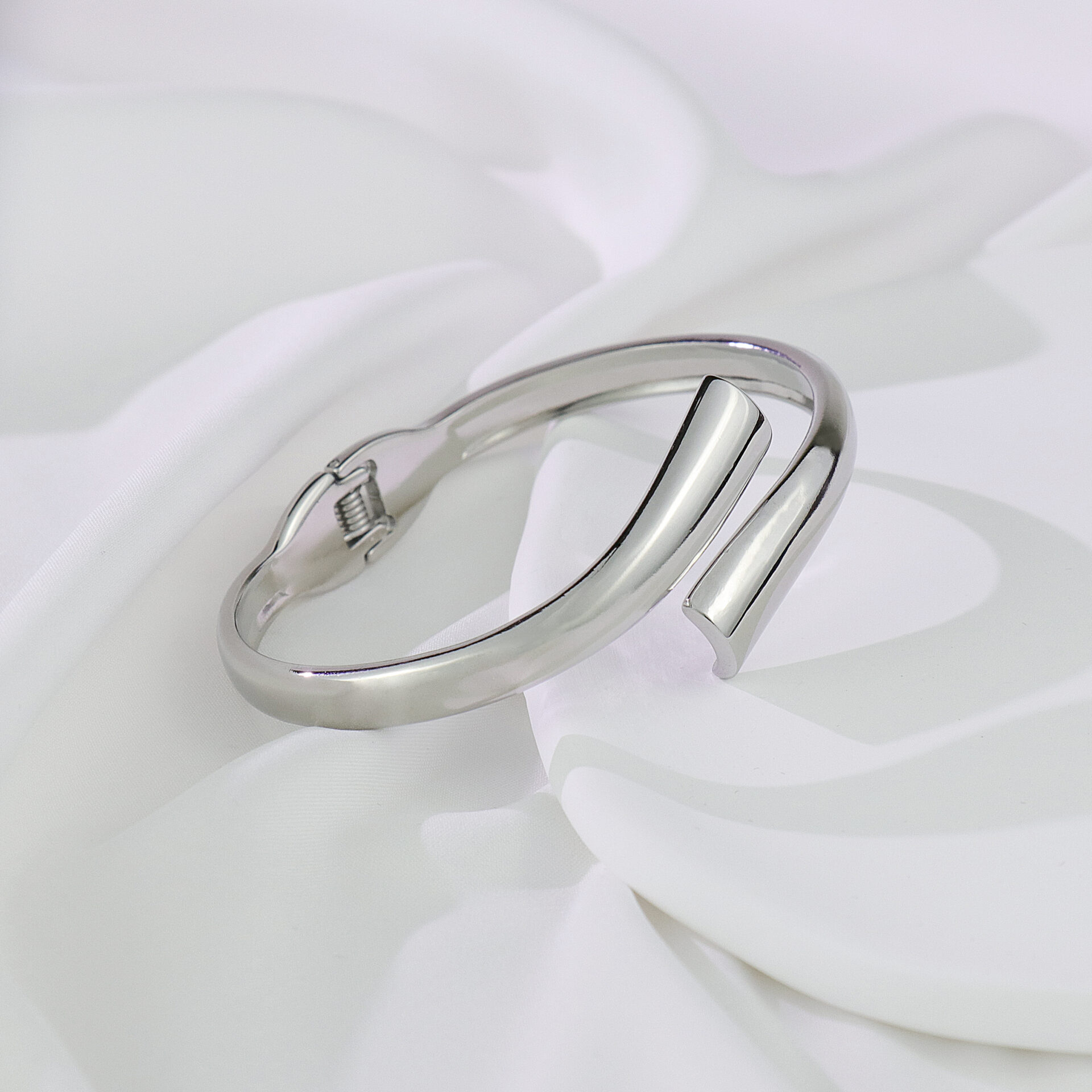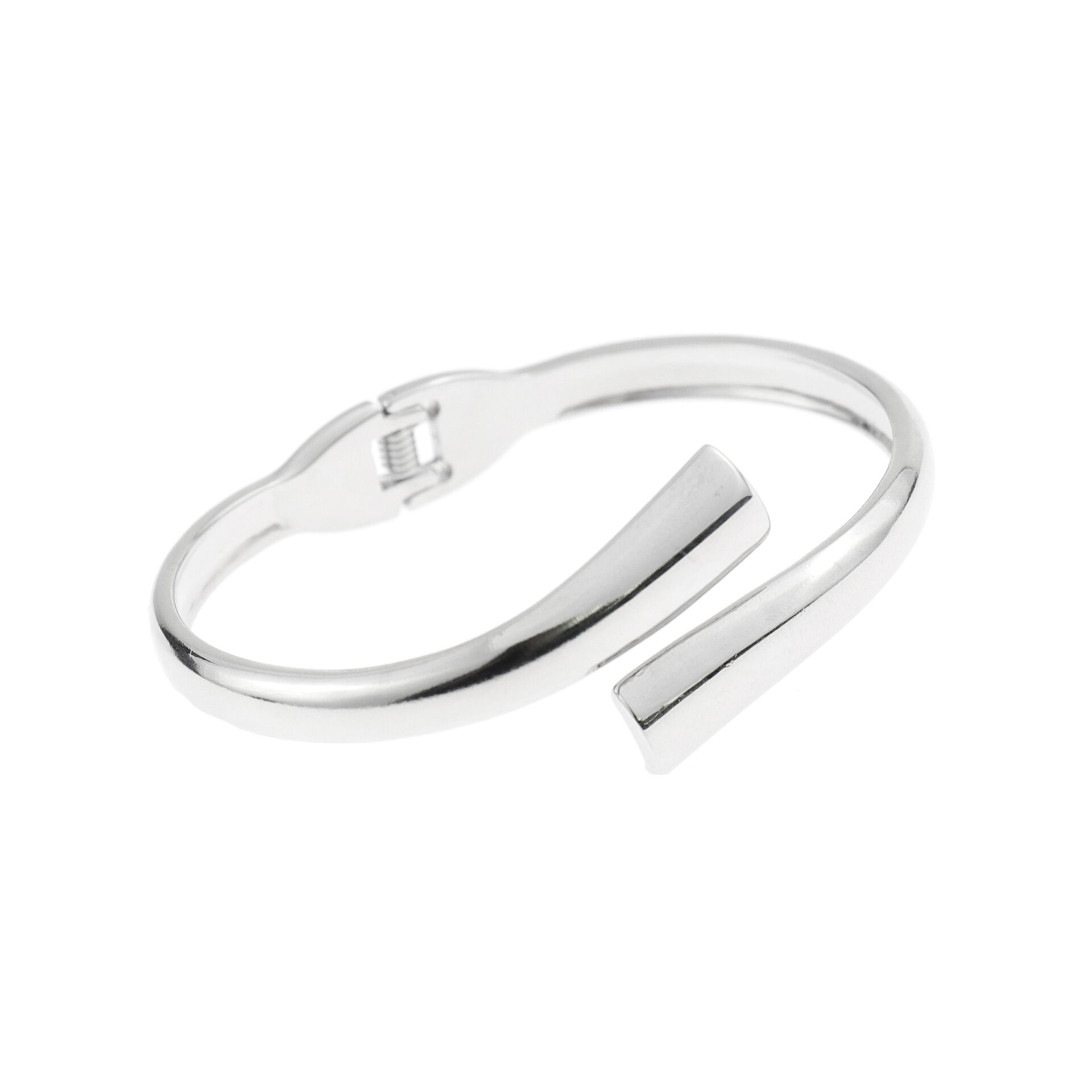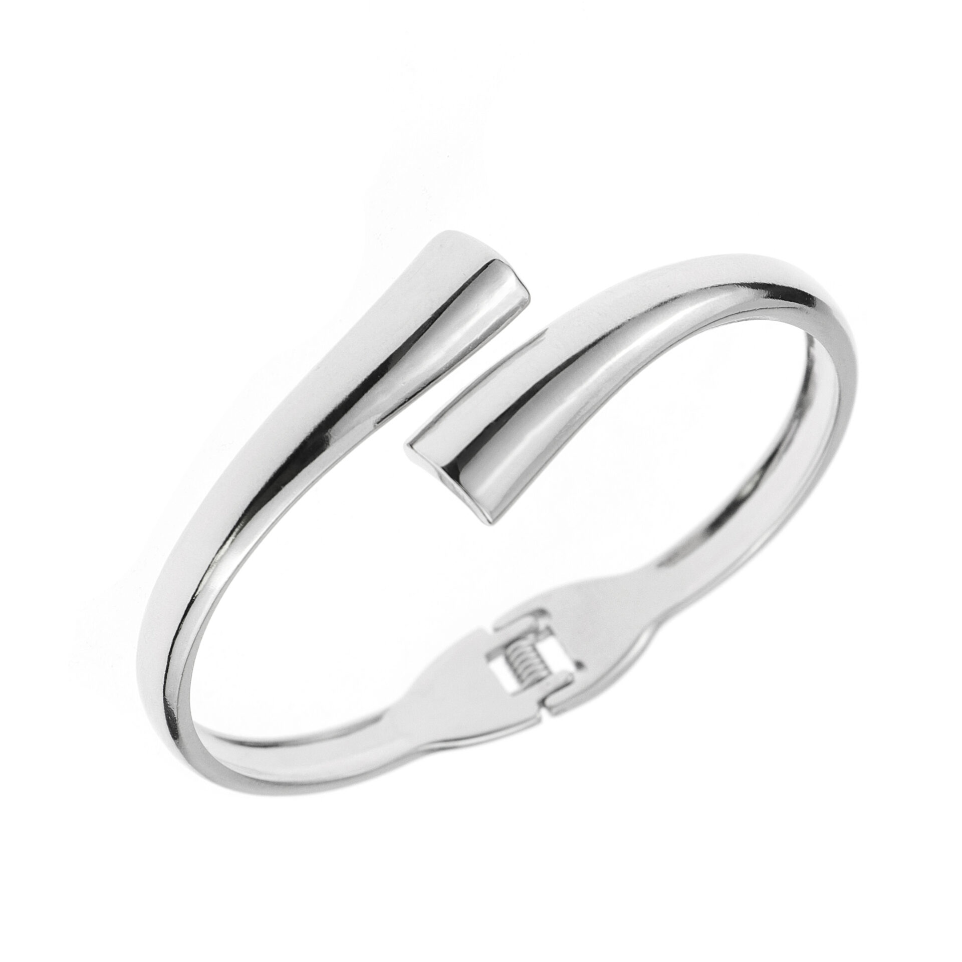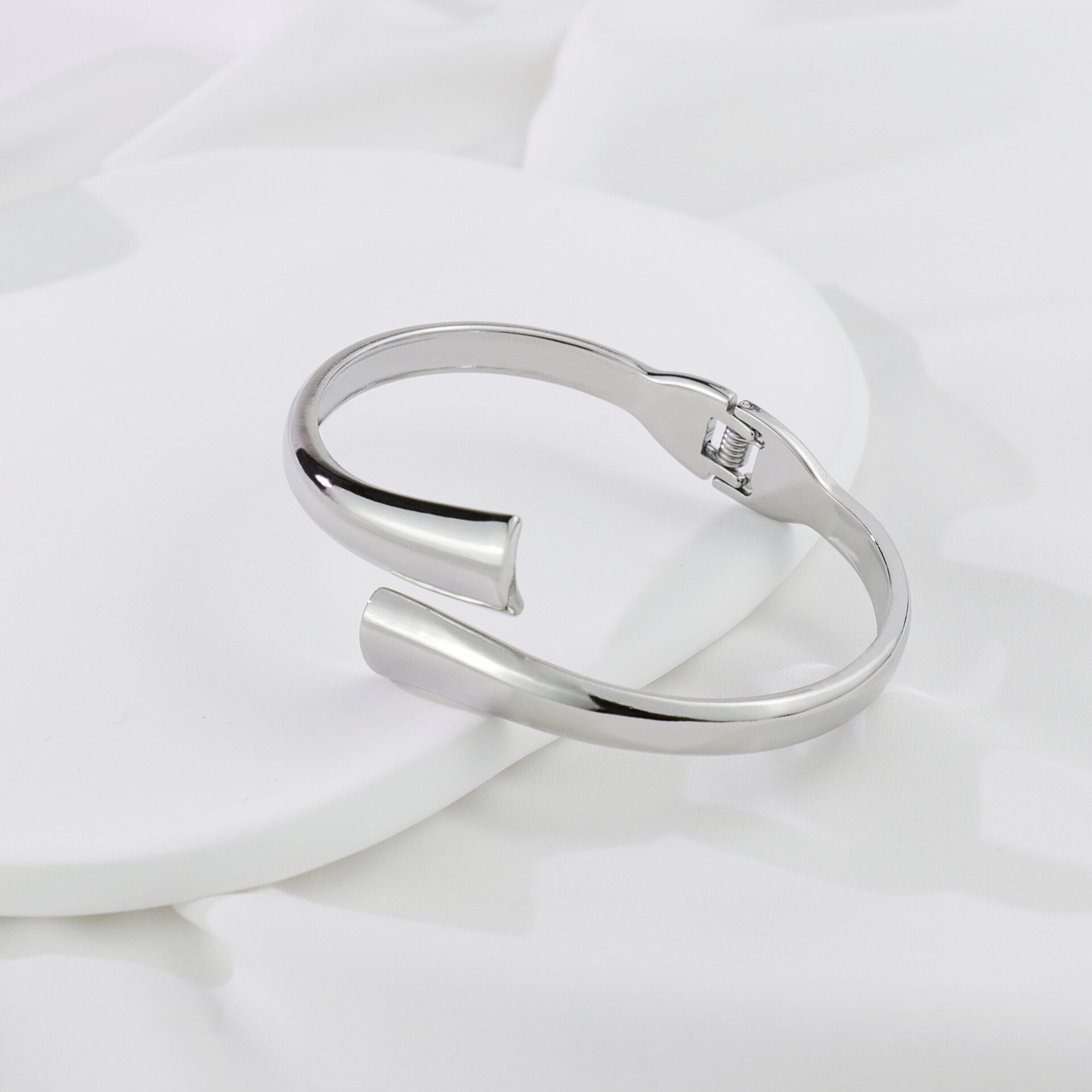 Crafted from high-polish metal with a smooth mirrored finish, this modern crossover design bracelet adds effortless elegance to any outfit. The minimalist interlocking bands create a striking yet versatile look, perfect for both day and night styling. A timeless unisex accessory that pairs beautifully with other jewelry layers.