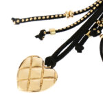 At the bottom hangs a golden heart-shaped pendant featuring a diamond-patterned design.