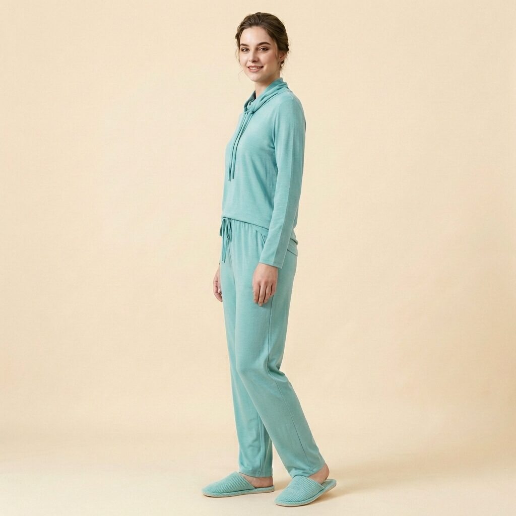 2pc cloud knit pajama set. Stay cozy and effortlessly stylish during the night with the Long-Sleeve Top and Pants Pajama Set. Made from modal-spandex blend fabric for a comfortable fit. Wear it as a set or mix and match with other PJs to put together a variety of sleepwear outfits.